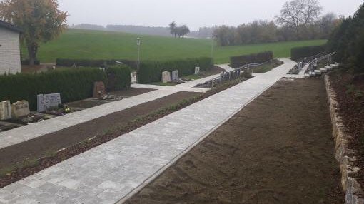 Begonnen wurde schon etwas länger mit der Sanierung des Friedhofs. Nachdem bereits im Jahr 2021 auf der untersten Ebene insgesamt 23 neue Urnengrabfelder, ein Gemeinschaftsurnengrabfeld und weitere 16 Urnengrabstätten durch 4 Urnenstelen entstanden sind, wurde im Jahr 2023 ein Grabfeld für anonyme Urnenbestattungen und die stark sanierungsbedürftige östliche Friedhofsmauer durch eine absolut ansprechende Natursteinmauer ersetzt. In diesem Zusammenhang wurde auch die östliche sehr rutschige Treppenanlage entfernt und die bestehende Betonmauer erweitert. Die Sanierungsarbeiten wurden nun im Jahr 2024 fortgeführt. Es wurden die Wege auf den Ebenen 2 und 3 neu gestaltet und ein weiterer westlicher Zugang zum Friedhof geschaffen. Des Weiten wurden in diesem Zusammenhang auch Grabstätten für weitere Bestattungsformen errichtet, eine Doppelhecke entfernt und die Hänge neu gestaltet.